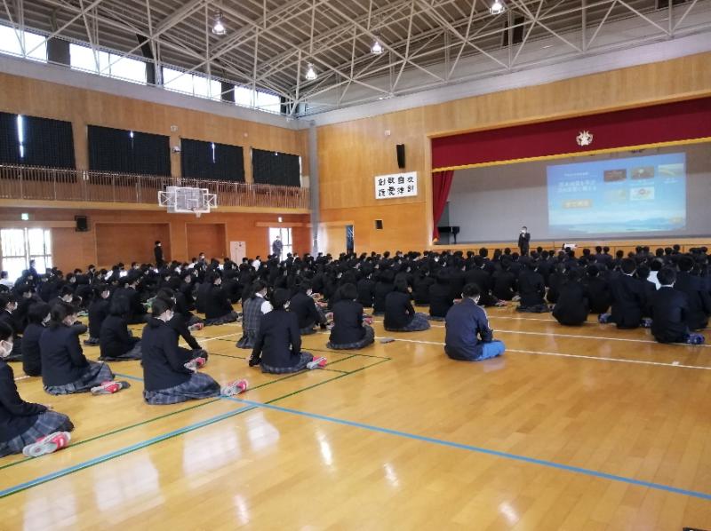 今日は、新一年生全員に探究活動の時間のオリエンテーションが行われました。これから1年間、グループでの協働活動を伴いながら、主に水俣病の歴史・再生の取組・環境に配慮した社会づくりなどについて学んでいきます。こうした地元の課題を学ぶことで、水俣高校生の持続可能な社会への提言が重みのあるものなっていくと思います。頑張れ、1年生!