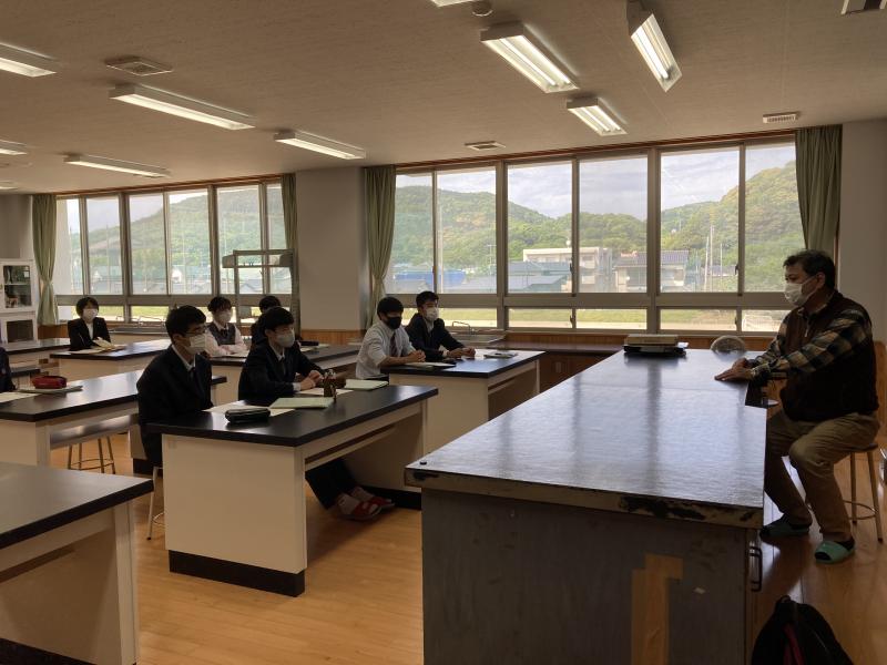 本日、牡蠣養殖班は、国立水俣病総合研究センターの松山明人先生をお招きして、昨年度から継続してきた、国水研と水俣漁業協同組合と本校での共同研究について、目的や内容についてのお聞きしました。