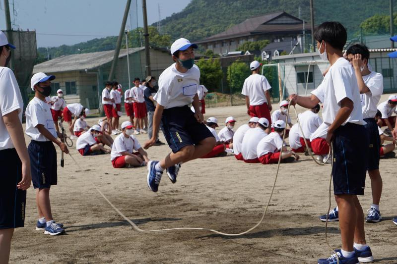 本日より体育大会の準備が始まりました。今年度から青団と赤団の2団構成となり、各団長・応援リーダーから挨拶・意気込みの表明があった後、全体練習や学年練習、各競技の練習などが行われました。笑顔がはじけた一日でした。