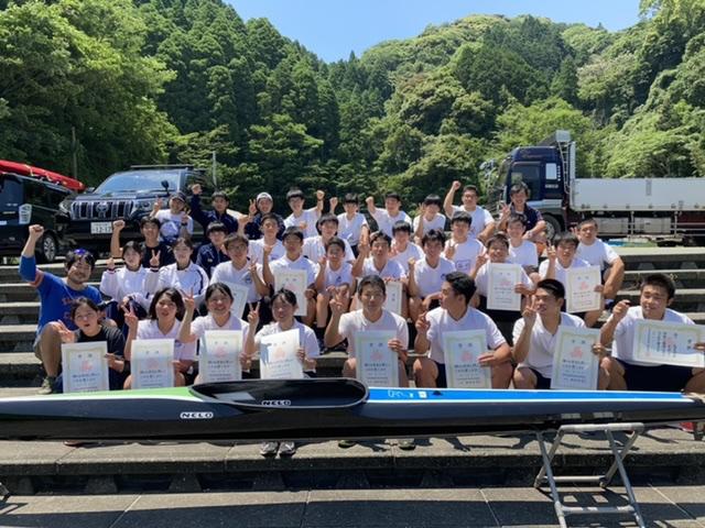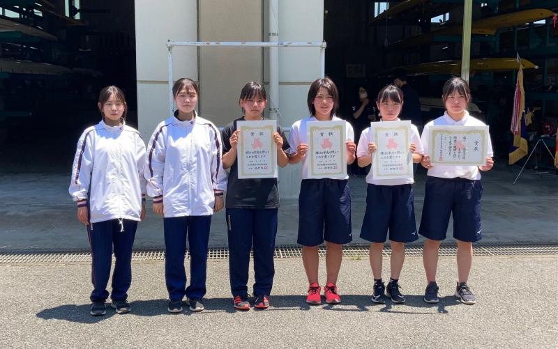 女子カヤックシングルで中村夏野さん(2年普通科・緑東中)と、森唯菜さん(3年普通科・水俣一中)・唐津弥未さん(3年普通科・水俣一中)・中村さん・濱田キララさん(1年普通科・津奈木中)の4人で参加した女子カヤックフォアでも優勝し、8月に福井県あわら市で開催されるインターハイへの出場権を獲得しました。