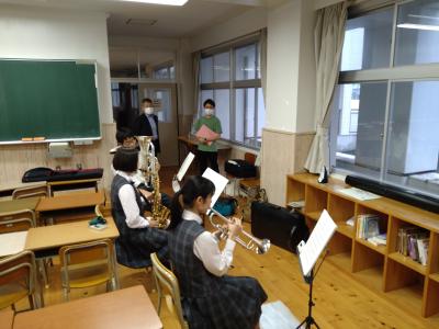 昨日は鶴山校長と一緒に、文化部の見学に来られました。今年度の総文祭は縮小開催のため、例年のようなパフォーマンスをすることはできませんが、生徒たちが真剣に作品や楽曲に打ち込む姿を見ていただきました。