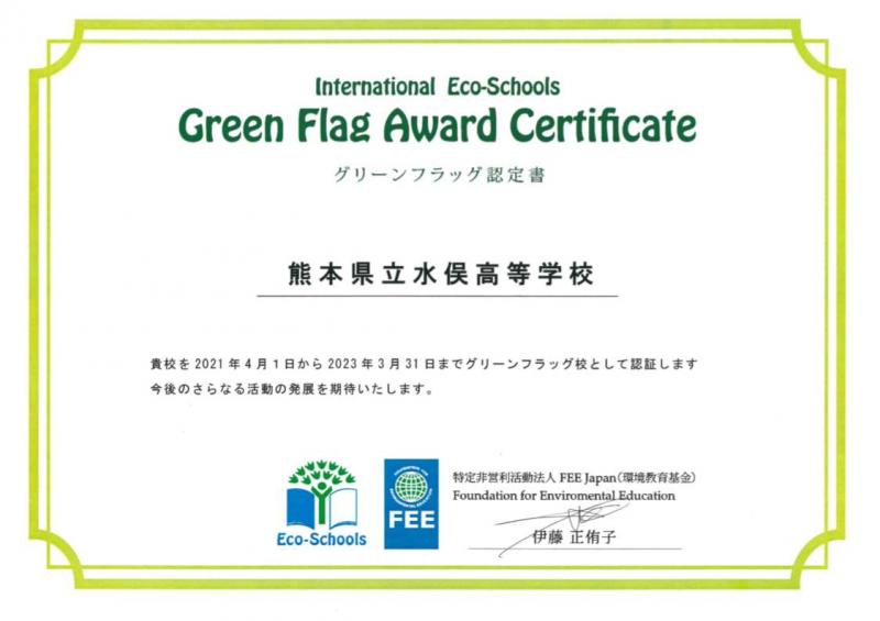 昨年度オンラインで行われたグリーンフラッグ審査会を経て、グリーンフラッグ校の認定が2年間延長されました。