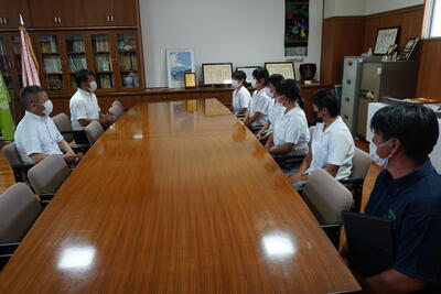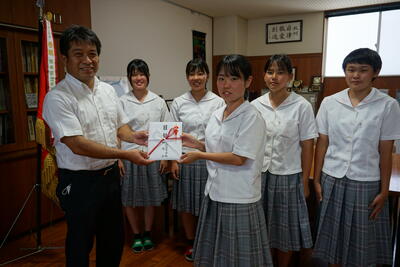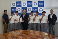 来月福井県で開催されるインターハイに出場するカヌー部女子チームが、髙岡水俣市長より激励をいただきました。