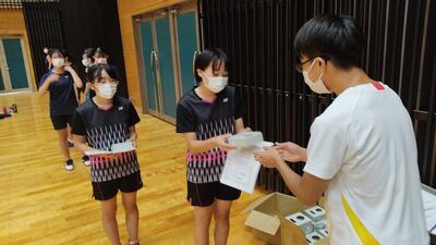 本校では、男子シングルス3部において、1名がリーグ戦全勝にて決勝に勝ち上がり、トーナメントで敗退。女子ダブルス3部において、1組がリーグ戦全勝にて決勝に進出し、準優勝しました。その他生徒もリーグ戦で2勝3勝しましたが、惜しくも決勝には上がれず、悔しい思いをしていました。有志参加でしたが、参加した生徒は持てる力を発揮し、頑張ってくれたと思います。