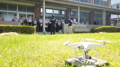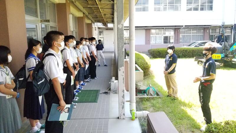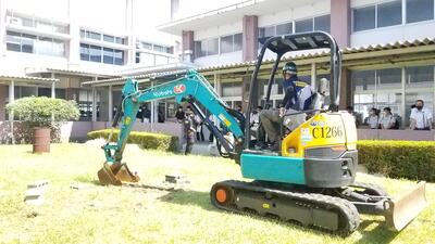 先日の体験入学では、多くの中学生の皆さんの参加ありがとうございました。建築コース見学では、建設業協会青年部の皆様の全面協力により、重機やドローンの実演及び建築の魅力についての講演をしていただきました。