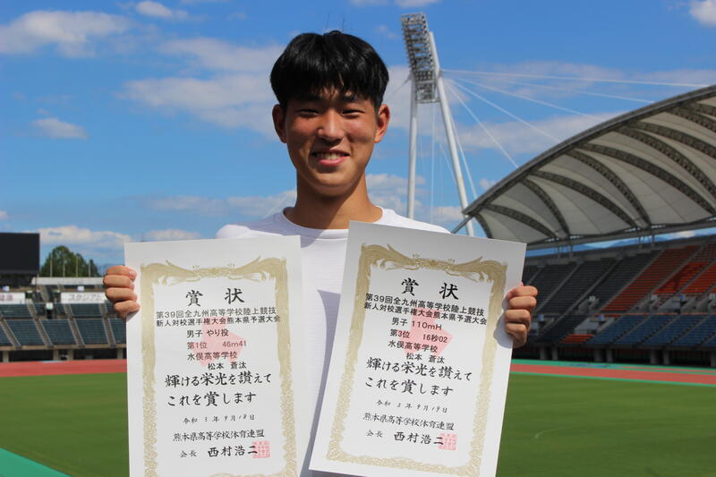 110H :3位 やり投げ :1位 松本 蒼汰さん(2年普通科)