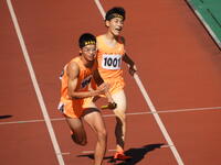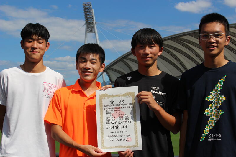 4×100m:3位 左から順に松本 蒼汰さん(2年普通科)岩﨑 拓真さん(1年機械科)糸瀬 風雅さん(2年普通科)塩平 健太さん(1年普通科)