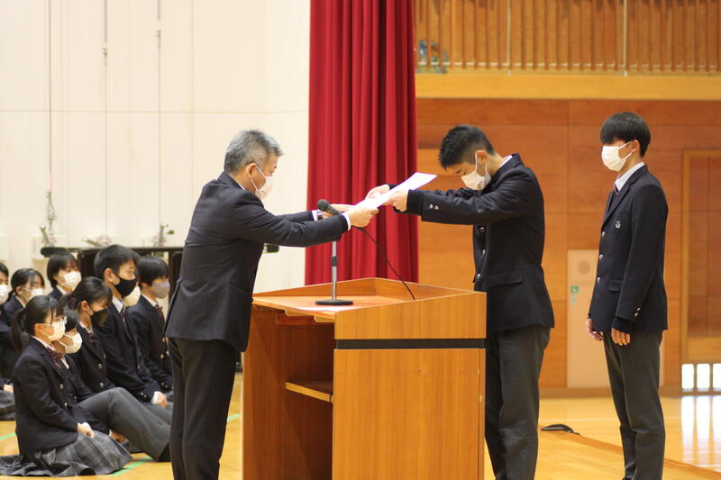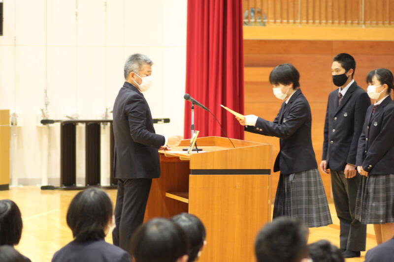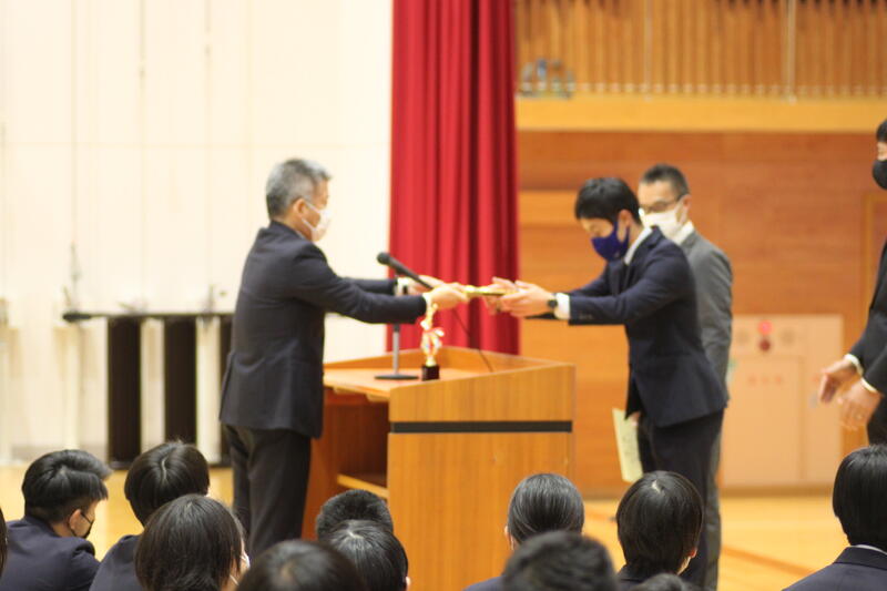 表彰式では本当にたくさんの水高生が表彰を受けました。(表彰一覧はは後日送付される通知表に同封されますので御確認ください。)我々職員も生徒の頑張りがあったからこそ、大変な時期を乗り越えられた気がします。3学期も一緒に頑張りましょう!また同時に、コロナ禍でもそうした生徒の活躍の場を作っていただいている関係者や日々奮闘されてきた医療従事者への感謝の気持ちも持ってほしいですね。