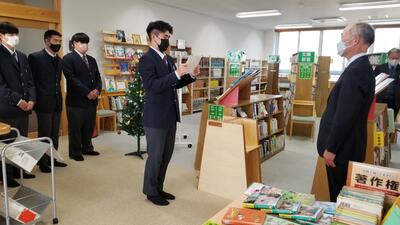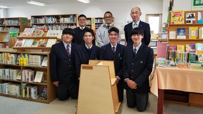 12月23日に建築コース3年生が、卒業制作で作成した大判図書用書架を図書室に寄贈しました。母校となる水俣高校に感謝の気持ちを込めて作成した書架は、3年間で培ってきた、ものづくりの精神と木材加工の技が光る仕上がりでした。図書館にお立ち寄りの際は、是非ともご覧下さい。