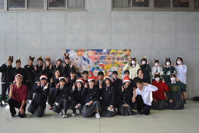 12月24日クリスマスイブの日に、第2回のクリスマス演技会が開催されました。今年は、美術部3年生が演技会タイトルとイラストを制作。音楽部の合唱と吹奏楽部の演奏、新体操部ダンスチームのパフォーマンスと男子新体操の演技が披露され、100人以上の観客と一緒に盛り上がりました。演技を行った生徒達も、1年の締めくくりを笑顔の演技会で終えることができ、達成感に包まれました。来年も良い年になりますように♪