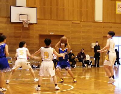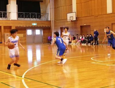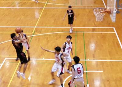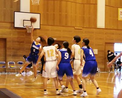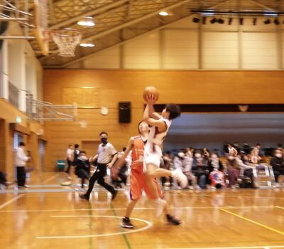 相手は強豪チーム。相手のディフェンスに阻まれ、なかなかシュートが決まりません。こちらのディフェンスでも意地を見せますが、ボールを奪われ相手に速攻を出され、前半は16点ビハインド。後半も粘り強く戦い、リバウンドを奪って失点を抑え、相手よりも多くシュートを決めました!しかし、一歩及ばず敗退しました。