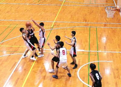 前半は互角に戦い、油断のならない試合展開となりました。相手チーム選手に3Pシュートを打たせないよう、気を引き締めてディフェンスを頑張りました。後半はチームワークでパスをつなぎます。しっかり息を合わせてボールを運び、少しずつ点差を離して勝利しました!