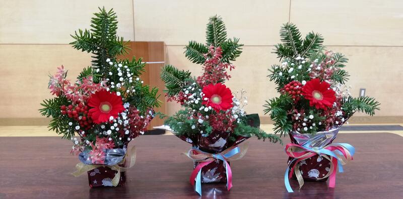今年最後の華道のお稽古がありました。クリスマスへ向けてのフラワーアレンジをしました。みんなそれぞれ素敵な作品を仕上げました。