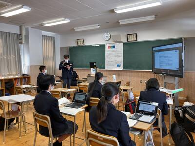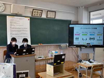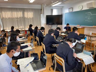 いつもはポスターを使い、聴衆にむけて発表を行いますが、今年は蔓延防止の観点からオンラインでの発表となりました。1年生はMeetを使用し自分の教室から発表を聞きました。みなさんとても真剣にメモをとりながら聞いていました。