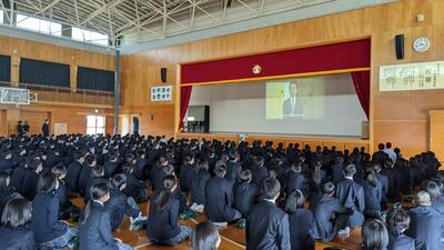 アリーナに移動後は、熊本地震後の防災DVDを視聴し、最後に学校長から、防災意識を高めるとともに命の大切さについても考えるきっかけにとの講評がありました。ご家庭でも有事の際の集合場所や連絡方法の確認などよろしくお願いします。
