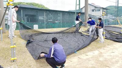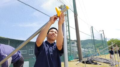 体育大会まで2週間を切りました。学校も少しずつ体育大会モードになってきております。練習にも熱が入ってくる時期ですが、気持ちも気温も熱くなってくると注意しないといけないのが熱中症です。ということで、今年も電気建築システム科の2年生全員と職員で、全校生徒の為に日除けを設置しました。これまでの実習で培ってきた技術とチームワークで効率良く、かつ安全に作業を進めていきます。さすが2年生!今週は雨がつづく予報ですが、爽やかに汗をかいた一時でした。