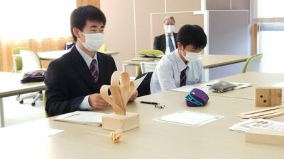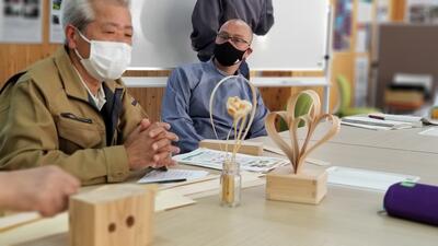 その後は、夏休みにアカデミアで計画している小中学生向け木育ワークショップ用に「木の加湿器」の試作品を建築コース3年生が製作してきました。講師をするために、製作してきたものを見てもらい、水俣市建具組合ものづくりマイスターの方々より、木製品の検討や木の性質や加工について、また製作方法についてアドバイスを受けました。