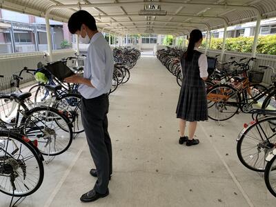 本校では毎日、交通委員による二重ロック点検を行っています。昨年途中までは紙での集計を行っていましたが、1人1台chromebookが導入され、様々なシーンで活用されるようになりました。二重ロック点検においても、その場で施錠状況を入力することで、瞬時にデータ化され自動集計されるシステムです。これにより最新のデータが生徒に還元され、二重ロック達成率はほぼ100%を維持しています。交通委員のみなさん、毎日ありがとうございます。