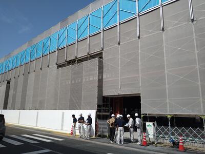 本日午後、建築コース2・3年生は、専門教科の授業時間に、本校近くの店舗新築工事見学に行ってきました。生徒たちは、鉄骨造の現場を見学するのは初めてで、その鉄骨の大きさや現場の広さに驚いていました。また、普段見えない天井裏の配管やスプリンクラー設備も見ることができました。
