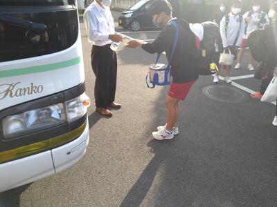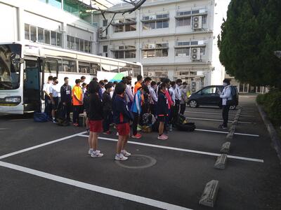 本日朝7時に、陸上競技部とハンドボール部は、パークドーム熊本である高校総体開会式参加のため、本校を出発しました。行進は、代表生徒12名と学校長及び職員で行います。学校を代表しての行進で、本校に勢いをつけてくれることでしょう。