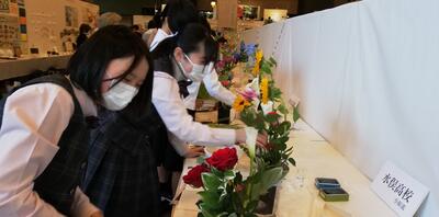 6/3(金)に熊本県高等学校総合文化祭に華道の展示をしてきました。8:30〜10:00までの制限時間の中で、花を活けて、作品を完成させました。多くの観覧客のみなさんに写真を撮ってもらいました。これまでの練習の成果を発表する良い経験になりました。これからも、部員一同、楽しみながら頑張ります。