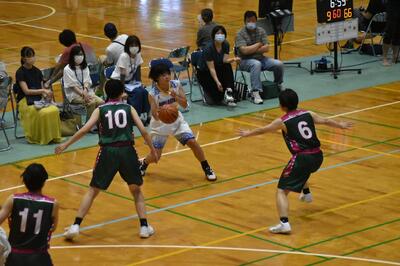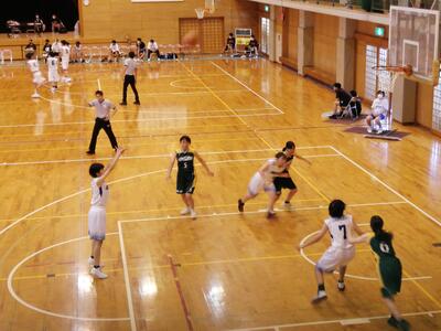 県内屈指の強豪校との対戦でした。3年生選手全員が一致団結し、なんとか3Pシュートも決めることができました。最後まで諦めず必死に食らいつき、よく健闘しました!