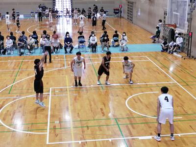 前半から両者譲らずバチバチの戦いで本校が6点リード。3ピリは焦りからかシュートもパスも上手く繋がらず、相手に点差を縮められ、4ピリでは相手に逆転されてしまいます。キャプテンがチームメートを鼓舞し、フリースローも決めて同点に追い上げ59-59で残り数秒!しかし、試合終了と同時にこちらのファウルを取られ、相手のフリースローで1点決められ、ギリギリのところで惜しくも1点差で敗退しました。