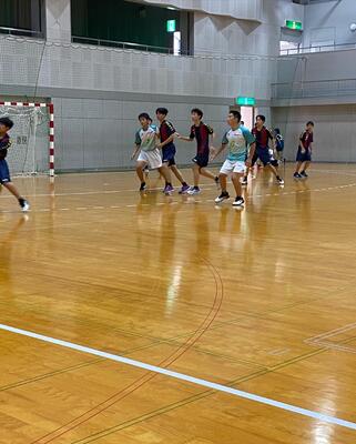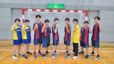 男子部員4名のため、天草高校の3名と合同チームを組み大会に臨みました。試合まで2回の練習試合を行い、連携を深めました。とはいえ、ハンドボールは7名で試合を行います。控え選手が全くいない中で、前後半合わせて60分を戦いきりました。