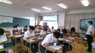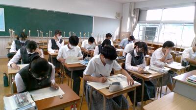 6月28日から1学期期末考査になりました。1年生にとっては初めての期末考査です。科目数も多く、休み時間も勉強内容の確認に一生懸命取り組んでいました。7月1日までが考査期間となっています。
