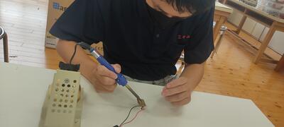 「水俣の課題について解決しようとしている人の講話を聞けて、とても貴重な経験をすることができた。最近では鹿の被害に悩まされているので、簡単で効率的な罠を作って対策されていたのですごいと思った。取材は緊張したけど、みんなで話し合いながら活動することができて良かった。今回は溶接が外れる失敗もあったので、次回はしっかり溶接する。」