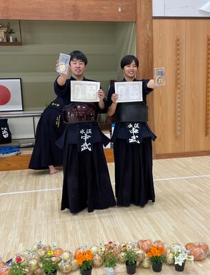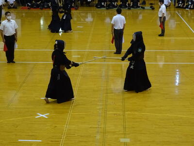 初日の個人戦では、個人戦では中武姉弟が共に今回優勝した九州学院の選手と八代白百合学園の選手に敗退しました。九州学院の選手相手に一本を先取しましたが、延長戦の末惜しくも敗れました。また、女子の部においても八代白百合の選手相手に4分の試合時間では勝敗が着かず、その後4度目の延長戦の末敗退しました。