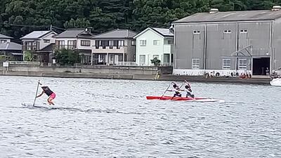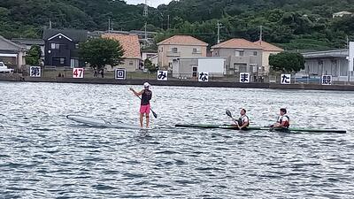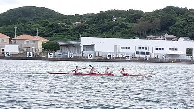 7月31日に水俣川河口で行われた「第47回みなまた競り舟大会」に本校カヌー部はボランティアで参加しました。3年ぶりに開催された本大会は、下流への300mのコースで実施されましたが、会場付近の河口や施設は練習で使用させていただいている場所です。