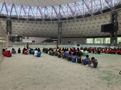 中学生体験入学後の部活動見学で、中学生の皆さんが多数来てくれました。先日は、本校の選手とみんなで軽くキャッチボールとジャンプシュートにチャレンジしてもらいました。楽しそうに参加してくれ、おかげで選手たちのやる気もアップしました。また是非見学に来てください。