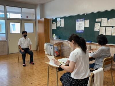 2日間にわたって就職希望の生徒に対して、外部指導者による面接指導をしていただきました。面接前には教室で面接の自主トレをする姿も見られ、学校の先生たちと行う面接の練習とは少し違って、緊張感につつまれた模擬面接となりました。