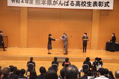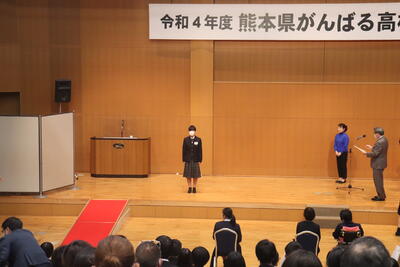 11月17日にホテル熊本テルサのホールにて、令和4年度熊本県がんばる高校生表彰式が行われ、本校機械科3年5組の川本さんが受賞しました。