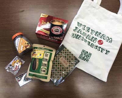 日越大学からは、日越大学のトートバッグにベトナムの食品や雑貨などを詰めて送ってくださいました。