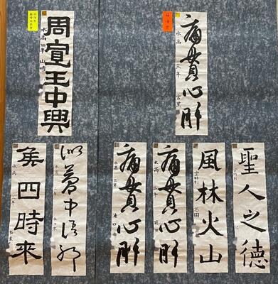 高校では書く内容が自由となっているため、各学年1学期の授業で学習した古典(過去の優れた筆跡)を元に作品を書きました。1年生は楷書、2年生は草書・隷書、3年生は隷書・楷書・行書で作品を制作し、様々な雰囲気の作品をお見せできたのではと思います。