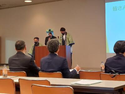挨拶:小嶋会長 発表:藤下副会長 プレゼン・発表要旨:赤司副会長