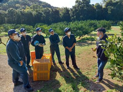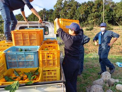 11月25日(金)は、イノシカハンターズの活動を支援していただいている福田農場様にて、みかんの収穫を体験させていただきました。