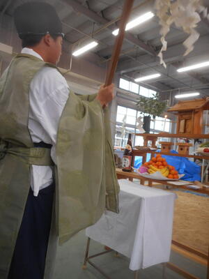 鞴祭りとは「鞴」の労をねぎらい、火の安全を祈願して安全に実習を行えるように祈願するものです。今年は機械科職員の井上先生が神主を務められ、見事に大役を果たされました。今後も安全第一で実習を行い、技術向上に努めます。