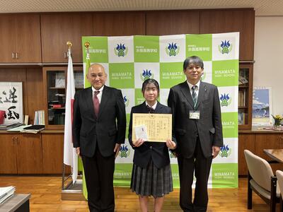 川本さんは、本校の生徒会長を務めながら、学業面でも優秀な成績を残し、陸上競技部での活躍に加え、全国高等学校鉄道模型コンテストでの活躍が認められ受賞となりました。おめでとうございます。