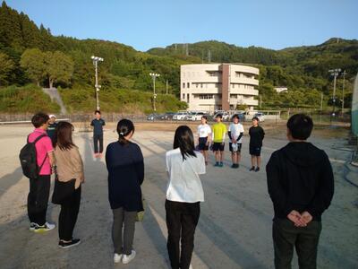 5月22日(月)は、サッカー部、弓道部、バスケットボール部、バドミントン部、剣道部、卓球部、カヌー部を見学し、それぞれ会長や役員さんより、試合に向けて頑張って、水俣から応援していると熱い激励の言葉をかけていただきました。