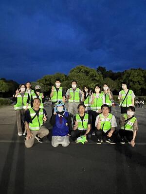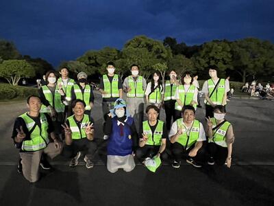 2班に分かれて、見回りを行っていると、ベストが目立つのもあり、多くの生徒や卒業生、保護者や地域の方々にあいさつをしてもらいました。参加者からも積極的に声かけを行い、規範意識の向上や防犯につながったのではないかと思います。天気もよく、心地よい風が吹く中、花火もきれいに上がり、多くの人と出会い、またひとつ普通の日常がもどりつつあるのだなと実感しました。
