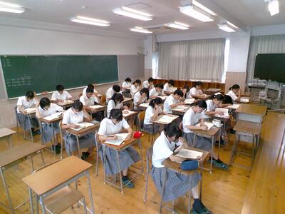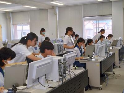 本日7月24日に中学生向けの体験入学を実施しました。暑い中、たくさんの中学生が参加してくれました。新体操部のアトラクションの後、全体会で生徒会からのお話があり、各科に分かれての体験授業となりました。普通科・商工・定時とそれぞれの科の特色を生かした体験が行われました。駐輪場の交通整備や受付、体験授業の助手や教室への誘導には多くの在校生がボランティアとして参加してくれました。在校生の先輩たちも中学生の姿を見ながら、かつての自分に思いを馳せていたのでしょうか。