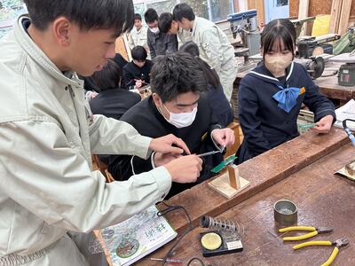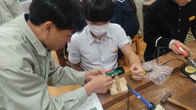 【電気コース】水俣第一中学校への出前授業(電子工作)その2