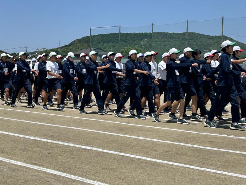 気温が高すぎず、晴天の絶好の体育大会日和の中、生徒たちの入場行進から始まりました。