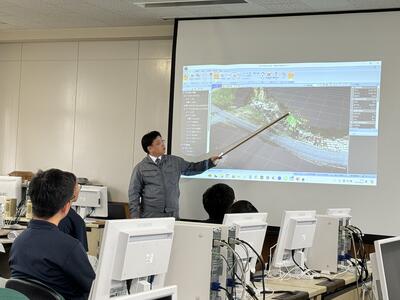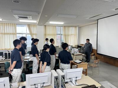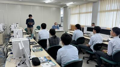 建築コースは、学科改編により令和7年度新入生から「建築関連学科」として新たに建設DX(デジタルトランスフォーメーション)の授業を開始します。その準備段階として、先進的に建設DXを推進する企業より講師をお招きし、1年生に対して行う予定の授業を先に3年生に授業していただきました。
