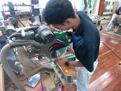 さすが大工技能士の免許を取得したメンバー、安全かつ正確に作業を進めていきます。さらには、技能向上やけが防止のために、各自で交代しながら作業を行うなど、チームワークも抜群です。