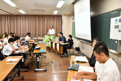 今年は、昨年度から連携している「南興建設」様に加え、「海と夕やけ」様、「亀萬酒造」様と地域や企業様からの課題に生徒が意見を出し合い課題解決に向けて取り組みます。各企業様と早速意見を交わし、交流も深めることができました。