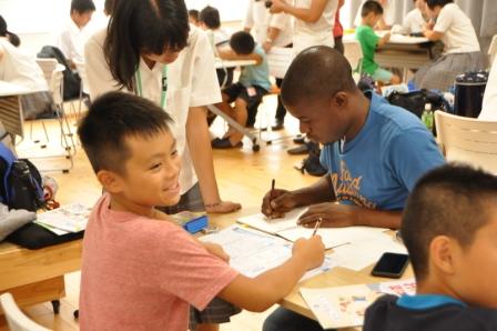 前日の3日(水)は、前半にアイスブレークとして、小学生約20名を6グループに分け、それぞれのグループに参加生徒・学生がつく形態の宿題補助を通して、相互にコミュニケーションを図りました。後半では蟹江憲史氏(慶應義塾大学環境情報学部 政策・メディア研究科 教授)を講師に迎え、「持続可能な開発目標(SDGs)」についての講演を聴講しました。